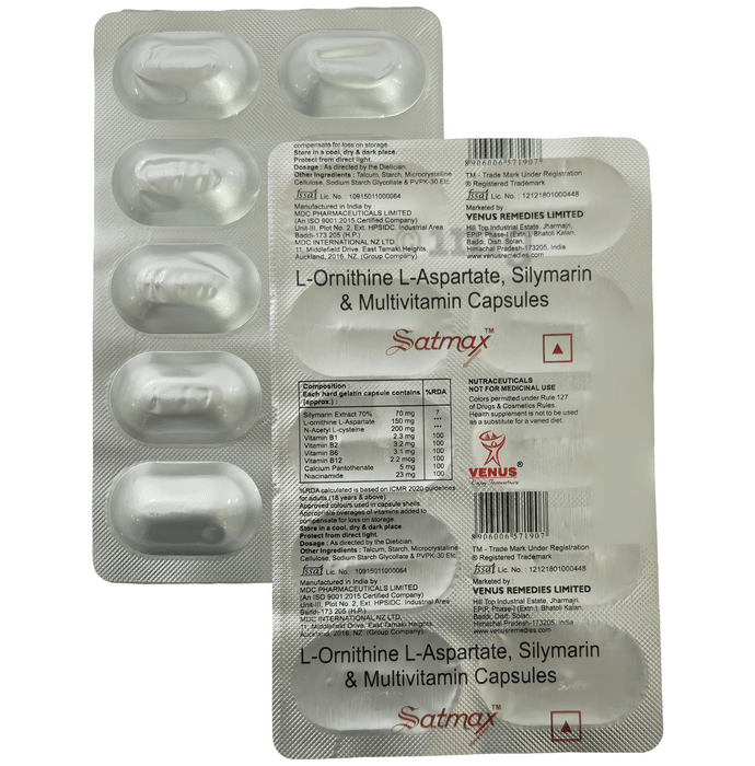 Calcium Pantothenate 10 mg,N-Acetyl Cysteine 200 mg,Niacinamide 50 mg,Silymarin 70 mg,Vitamin B1 5 mg,Vitamin B12 15 mcg,Vitamin B2 5 mg,Vitamin B6 3 mg,L-ornithine-L-Aspartate 150 mg