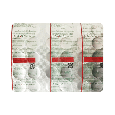 Sayfer XT Tablet helps manage iron deficiency anemia, a condition in which the body lacks enough healthy red blood cells to carry oxygen efficiently, causing fatigue, weakness, and reduced productivity. It provides iron in a chelated form that allows better absorption than conventional iron salts while causing fewer gastrointestinal side effects such as nausea, constipation, or a metallic taste. The medicine improves hemoglobin synthesis and oxygen delivery throughout the body, helping restore energy levels, enhance physical performance, and support overall well-being.