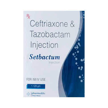 Setbactum Injection helps treat infections that are caused by bacteria. It contains two medicines, Ceftriaxone, and Tazobactum. Ceftriaxone stops the growth of infection-causing bacteria. Tazobactum enhances the activity of Ceftriaxone against the bacteria as well as reduces resistance of the bacteria to the antibiotic. This medicine usually makes you feel better within a few days, but you should continue taking it as prescribed even when you feel better to make sure that all the infectious bacteria are killed and do not become resistant.