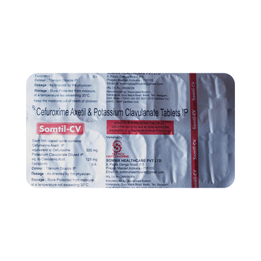 Somtil-CV Tablet contains two different medicines, Cefuroxime and Clavulanic Acid, that work together to kill the bacteria that cause infections. Cefuroxime works by stopping the growth of bacteria. Clavulanic Acid reduces resistance and enhances the activity of Cefuroxime against bacteria.