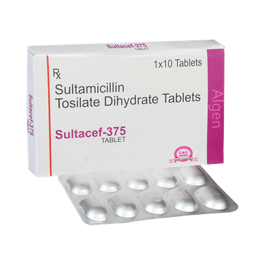 Sultacef 375mg Tablet is an antibiotic medicine used for bacterial infections of the urinary tract and ear (otitis media) and gonorrhea. It stops the growth of infection-causing bacteria and helps in treating the infection. Take it in the dose and duration advised by the doctor. Your symptoms may improve before the infection is completely cured. Do not stop taking it without consulting your doctor; doing so may cause the infection to return or worsen. Follow your doctor’s instructions carefully to get maximum benefit.