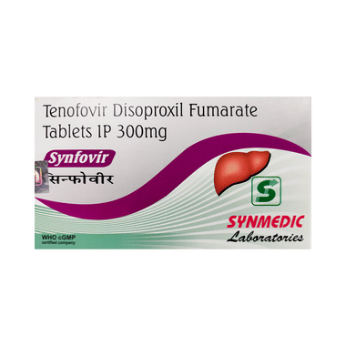 Synfovir Tablet is used in the treatment of chronic hepatitis B virus (HBV) infection. It is also used to treat HIV infection in combination with other anti-HIV medicines. It prevents the multiplication of viruses in human cells. This stops the virus from producing new viruses and clears up your infection.
