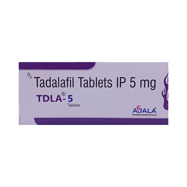 Tdla 5 Tablet belongs to a group of medicines called PDE5 inhibitors. It works by relaxing the blood vessels in your penis, allowing blood to flow into the penis and produce an erection when sexually aroused. This medicine will only help get an erection if you are sexually stimulated. It is very effective for the treatment of erectile dysfunction and needs to be taken at least 30 minutes before sexual activity. In addition to treating erectile dysfunction, it improves sexual performance and satisfaction. However, do not take this medicine if you also take medicines called nitrates (often given for chest pain).