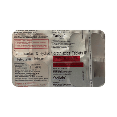 Telvate-H Tablet is a combination of two medicines namely telmisartan and hydrochlorothiazide. It is generally used when one medicine alone is not controlling your blood pressure effectively. Telmisartan works by relaxing and widening your blood vessels so your blood can flow more easily. This will lower your blood pressure. Hydrochlorothiazide is known as a diuretic (water pill) which increases urine output thereby lowering blood pressure. If your blood pressure is controlled you are less at risk of having a heart attack, stroke, or kidney problems. The medicine must be taken regularly as prescribed to be effective. You do not usually feel any direct benefit from taking this medicine, but it works in the long term to keep you well.