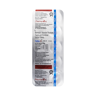 Tolby-D Tablet relieves pain, reduce swelling and ease inflammation in conditions like rheumatoid arthritis, osteoarthritis and ankylosing spondolytis. It also gives relief from muscle and back pain, toothache, or pain in the ear and throat. It works by reducing substances in the body that causes pain and swelling. Take it as prescribed to get the most benefit. This will help you to go about your daily activities more easily and have a better, more active, quality of life.