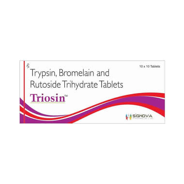 Triosin Tablet is a combination of medicines used for relief of pain, inflammation, and swelling in conditions that may occur due to trauma, surgery or everyday life. It may also be used to provide relief in degenerative and inflammatory conditions that affect muscles and joints such as rheumatoid arthritis and osteoarthritis. It promotes speedy recovery due to its anti-inflammatory and antioxidant properties. Take it as it is prescribed to get the most benefit. This will help you to go about your daily activities more easily and have a better, more active, quality of life.