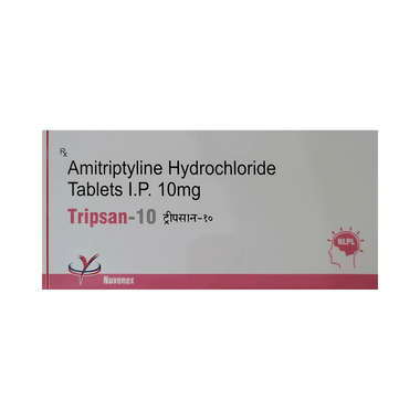 Tripsan 10 Tablet is an antidepressant that contains amitriptyline and is primarily used to treat major depressive disorder. It is used to relieve symptoms of depression, improving mood, energy levels, and sleep quality. It works by increasing the levels of serotonin and norepinephrine in the brain, which helps improve mood and modulate pain signals. Sometimes, it is also used for insomnia, anxiety, and bedwetting in children.