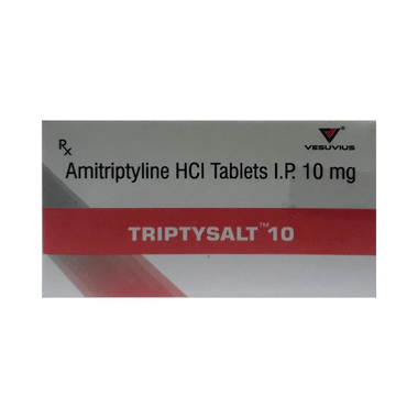 Triptysalt 10 Tablet is an antidepressant that contains amitriptyline and is primarily used to treat major depressive disorder. It is used to relieve symptoms of depression, improving mood, energy levels, and sleep quality. It works by increasing the levels of serotonin and norepinephrine in the brain, which helps improve mood and modulate pain signals. Sometimes, it is also used for insomnia, anxiety, and bedwetting in children.