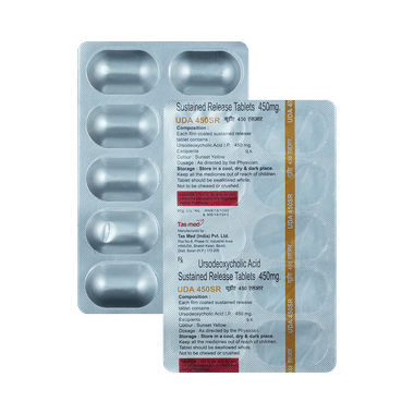 Uda 450 SR Tablet is a medicine that helps decreases the amount of cholesterol produced by your liver. It helps to break down cholesterol that has formed into “stones” in the gallbladder. It may take several months to completely dissolve the stone, so you need to take the medicine regularly and as long as the doctor has prescribed it for it to be effective. There might be other medicines and certain lifestyle changes that can reduce your cholesterol level and make gallstones less likely, consult with your doctor.