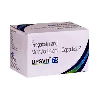 Upsvit 75 Capsule is a combination of medicines used to treat long-lasting (chronic) pain caused by nerve damage due to diabetes, shingles or spinal cord injury. It reduces pain and its associated symptoms such as mood changes, sleep problems, and tiredness. Pregabalin, an active ingredient of this medicine, is thought to work by interfering with pain signals that travel through the damaged nerves and the brain. It also contains nutritional supplements that improve nerve conduction. Taking Upsvit 75 Capsule regularly will improve your physical and social functioning and overall quality of life.