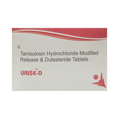 Urise-D Tablet is a combination of two medicines: Tamsulosin and Dutasteride, which relieves the symptoms of benign prostatic hyperplasia. Tamsulosin is an alpha-blocker. It works by relaxing the muscle around the bladder exit and prostate gland so as to allow easy passage of urine. Dutasteride is a 5-alpha-reductase inhibitor, which helps in shrinking the prostate gland by decreasing the level of the hormone that helps the prostate gland grow.