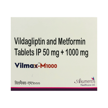 Vilmax-M 1000 Tablet is a combination of two medicines that work together in different ways to lower your blood glucose levels. Lowering blood glucose levels is an essential part of managing diabetes. If you can control your blood glucose level, your risk of getting any of the serious complications of diabetes such as kidney damage, eye damage, nerve problems, and loss of limbs is also lowered. Additionally, proper control of diabetes can also reduce the risk of heart disease and stroke. Taking this medicine regularly along with proper diet and exercise will help you live a normal, healthy life. You should keep using this medicine for as long as it is prescribed because it is protecting your future health.
