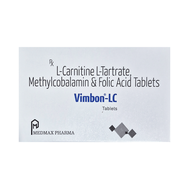 Vimbon-LC Tablet is a combination of vitamin B9, B12, L-carnitine L-tartrate. Folic acid is essential for production of red blood cells. It prevents and treats folate deficiency and anemia. When taken by pregnant women, Folic acid prevents miscarriage, preterm labor, and neural tube defects in infants. Levo-carnitine L-tartrate helps turn the fats present in ingested food into energy. It decreases insulin resistance and oxidative stress and improves immune function. Methylcobalamin corrects vitamin B12 deficiency thereby helping in treating certain anemias and nerve problems.
