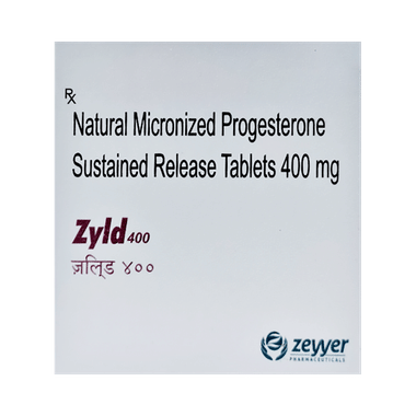Zyld 400 Tablet SR contains progesterone, a female hormone that is important in the regulation of ovulation and menstruation. It is used to cause menstrual periods in women who have not reached menopause but are not having periods due to a lack of natural progesterone in the body. This medicine helps to prepare the uterus for pregnancy by causing the uterus lining (endometrium) to thicken. This increases the chance of a successful pregnancy. You should use the medicine as prescribed for it to be effective. You may be asked to continue with this treatment for a period after becoming pregnant.