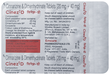 Cinnarizine + Dimenhydrinate is a combination of two medicines: Cinnarizine and Dimenhydrinate. Cinnarizine is a calcium channel antagonist which works by preventing constriction of the blood vessels of the inner ear. This improves the microcirculation of the ear. Dimenhydrinate is an antiallergic. It blocks the action of a chemical messenger (histamine) that is responsible for light-headedness in vertigo.