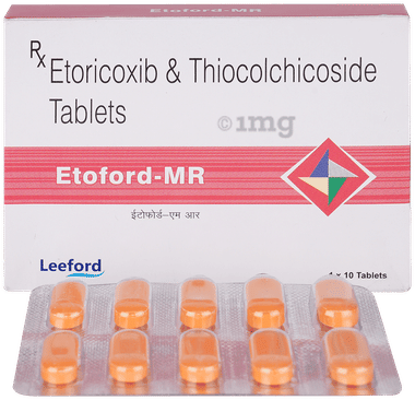 Etoricoxib + Thiocolchicoside is a combination of two medicines: Etoricoxib and Thiocolchicoside, which relieves pain and relaxes the muscles. Etoricoxib is a non-steroidal anti-inflammatory drug (NSAID) which works by blocking the release of certain chemical messengers that cause pain and inflammation (redness and swelling). Thiocolchicoside is a muscle relaxant. It works on the centers in the brain and spinal cord to relieve muscle stiffness or spasm and to improve pain and movement of muscles.