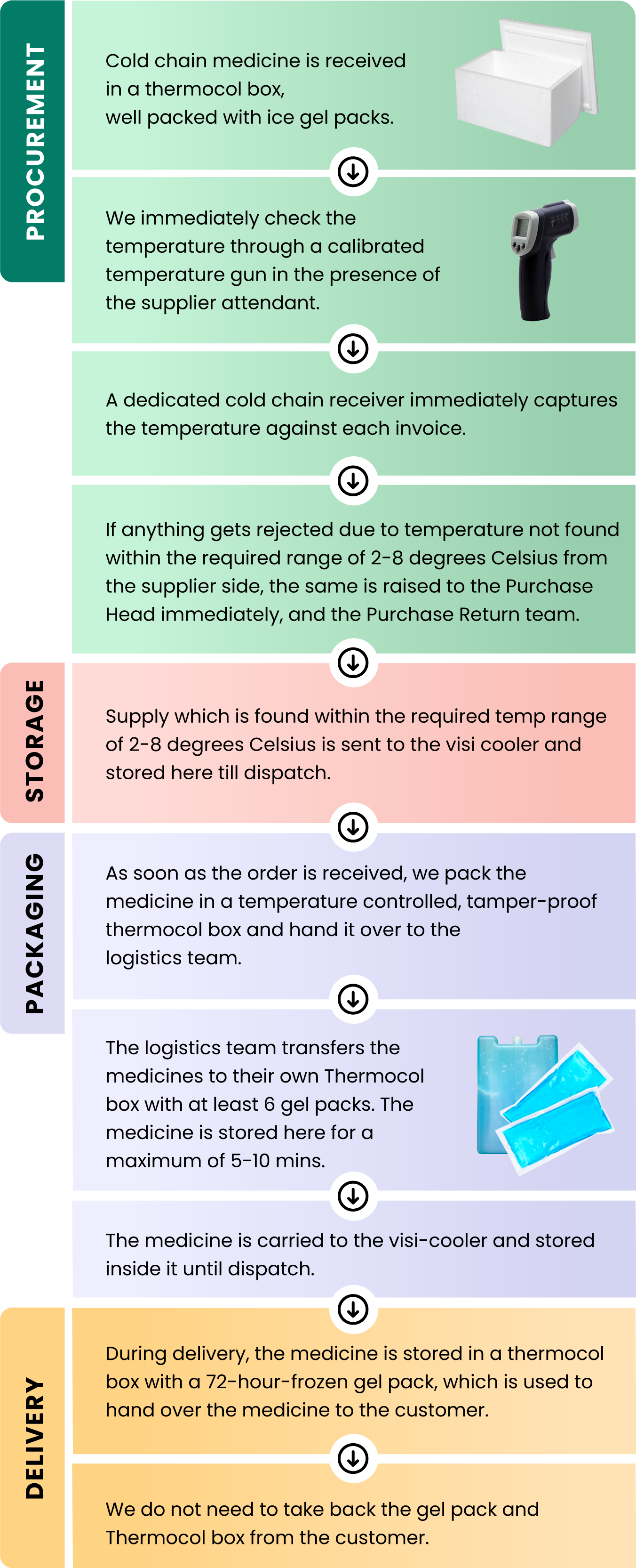 For cold-chain medicines, we ensure end-to-end monitoring at all stages from warehouse inward, storage, transport till delivery to customers.
