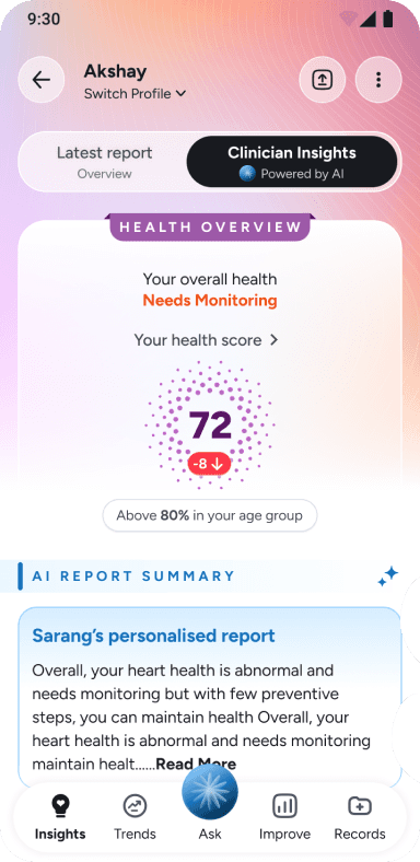 Confused about a biomarker? Ask your AI assistant for clear explanations, trend tracking, and personalized suggestions anytime.
