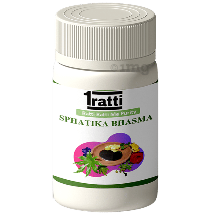 1Ratti Sphatika Bhasma is an ayurvedic mineral-based formulation with sphatika bhasma as its prime ingredient, purified and processed in indigenous herbal extracts. It supports wellness related to respiratory and skin health. It may help maintain pitta dosha balance.