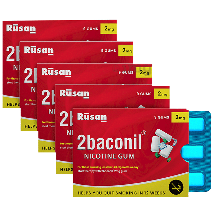 2baconil 2mg Nicotine Gum (9 Gums Each) | Icy Mint Flavor | Helps You Quit Smoking | | Nicotine Replacement Therapy