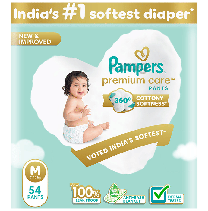 Pampers Premium Care Pants with Aloe Vera & Cottony Softness | Size Medium