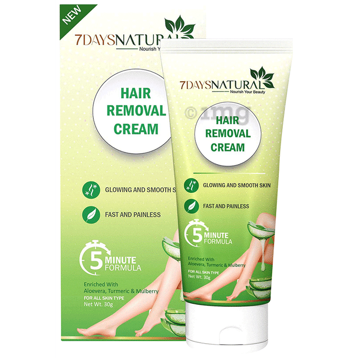 7 Days Natural Hair Removal Cream is a fast-acting depilatory formulation designed to gently and effectively remove unwanted hair in as little as five minutes. Infused with natural ingredients like aloe vera, turmeric, and mulberry, this cream not only clears hair from the skin’s surface but also leaves it feeling smooth, soft, and comfortable. The cream is developed for use on the body and is suitable for all skin types. Its nourishing botanical blend can help maintain skin hydration and calm the surface after use. This formula is ideal for those seeking a painless alternative to shaving or waxing, providing quick and clean hair removal from the comfort of home.