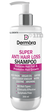 Dermora Anti Hair Loss Oil is formulated with 10 botanical cold-pressed oils like onion seed, AHL (anti-hair loss blend), argan, basil, bhringraj, and vitamin E to help control hair fall control, prevent hair breakage, increase blood circulation, and make them strong. Onion seed oil is rich in antioxidants and sulphur to help strengthen weak hair and promote new hair growth. The anti-inflammatory substance thymoquinone in it can aid in reducing hair fall, scalp dryness, eruptions, and dandruff. Argan and bhringraj oil help add nourishment and shine and prevent frizzy and brittle hair breakage.