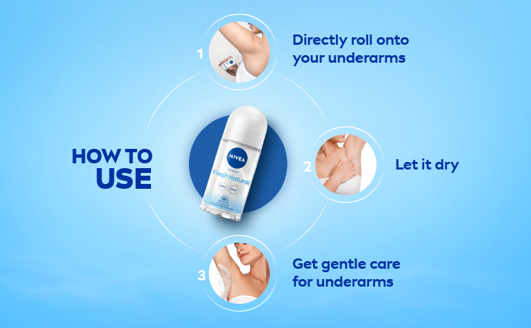 - Roll it directly on the underarms and allow it to dry