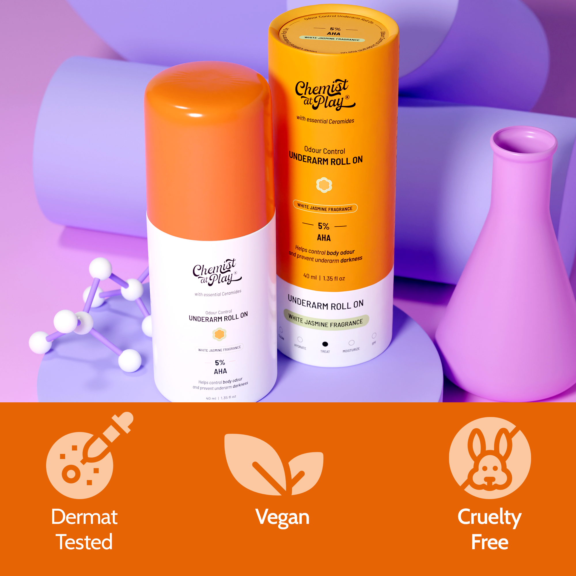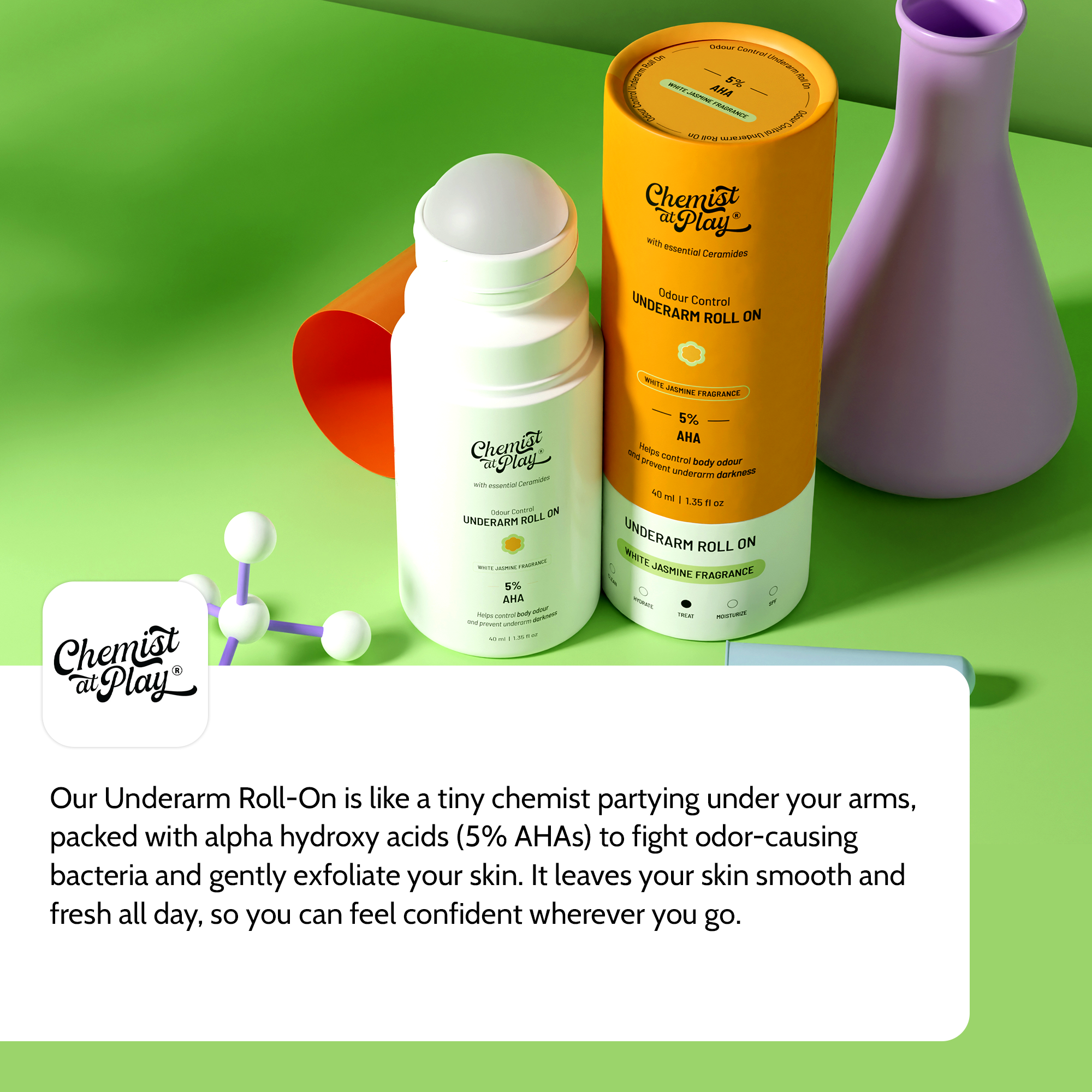 Chemist At Play Odour Control Underarm Roll On | Lactic Acid Deodrants White Jasmine