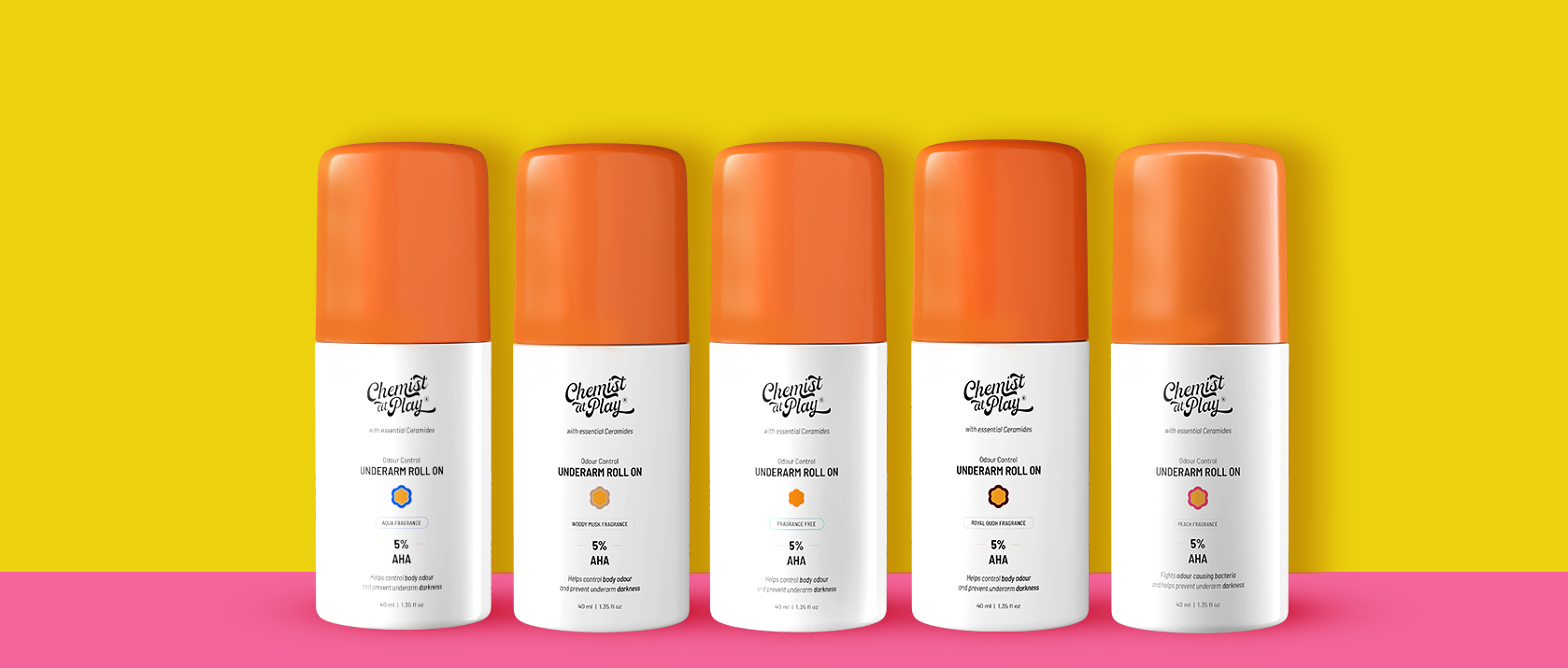 Chemist At Play Odour Control Underarm Roll On is formulated to help prevent body odour and exfoliate dead skin cells. It is amde on a base of essential ceramides, which form a barrier to keep moisture in the skin from leaving. It shields the skin from environmental harm and prevents dryness and irritation by retaining moisture. The roll-on contains AHAs (lactic acid and mandelic acid) that gently exfoliate, increase cell turnover, reduce pigmentation, increase collagen production, and suppress melanin production.