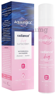 Aqualogica Glow+ Dewy Sunscreen for UVA/B & Blue Light Protection SPF 50+ PA+++ is a lightweight, hydrating sunscreen formulated to provide protection against UVA/UVB rays and blue light exposure. Enriched with a blend of Vitamin C, papaya fruit extract, hyaluronic acid, and ceramides, it helps support skin hydration and clarity while maintaining a non-sticky, dewy finish. This sunscreen may assist in addressing dull skin, sun exposure, and environmental stressors. The water-lock technology aims to retain moisture, and its non-greasy texture makes it suitable for daily use under makeup or on bare skin. Designed for all skin types, it is dermatologically tested and crafted without common irritants, making it gentle enough for everyday application.