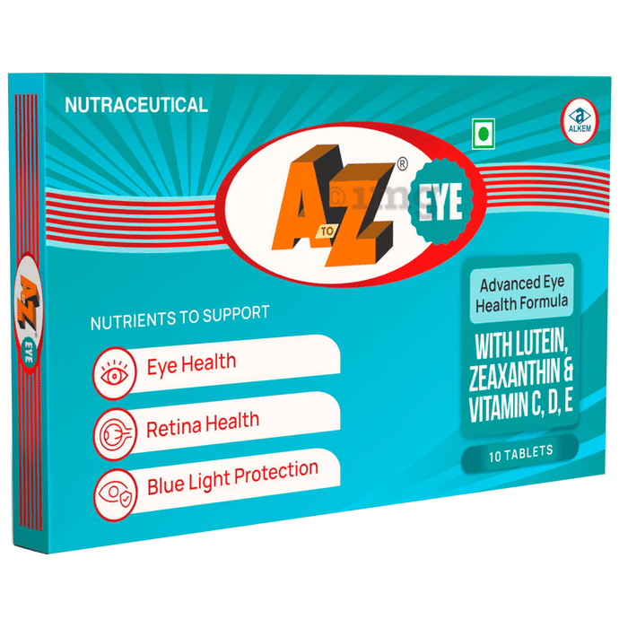 A to Z Eye Tablet is a blend of 13 key nutrients, including Lutein, Zeaxanthin, Bilberry, and Astaxanthin. It provides comprehensive nutritional support for maintaining eye comfort and visual performance. The antioxidant blend of Vitamins C, E, Zinc, and Selenium helps support eye health against daily oxidative stress, while Vitamin D2, Vitamin B12, and Melatonin contribute to nerve function and visual comfort. It is suitable for individuals experiencing visual strain or fatigue due to extended screen exposure or environmental factors.