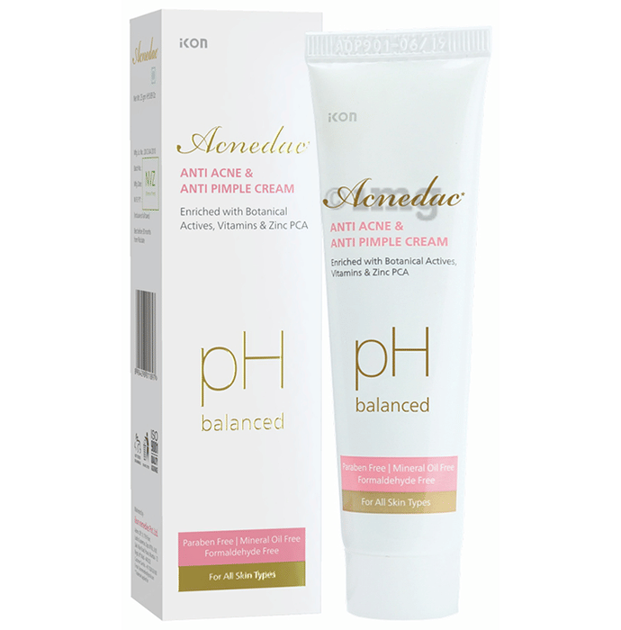 Acnedac Anti Acne & Anti Pimple Cream is a blend of actives that helps reduce acne and pimples. Hectic lifestyles and external environmental factors like dirt, dust and pollution can lead to skin stress that can appear in the form of acne, pimples, skin burnouts and blemishes. It reduces the frequency of reoccurrence of acne and pimples. It also helps fights blackheads and whiteheads.
