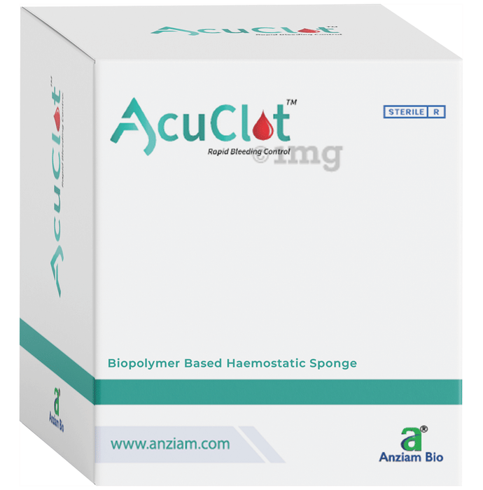AcuClot Haemostatic Sponge 5X5CM is a compact and easy-to-use medical sponge crafted to assist with rapid control of external bleeding. Designed for convenience, it requires no refrigeration and can be kept readily available in emergency kits, vehicles, or first aid supplies. Its sterilised composition ensures hygienic use when applied externally.