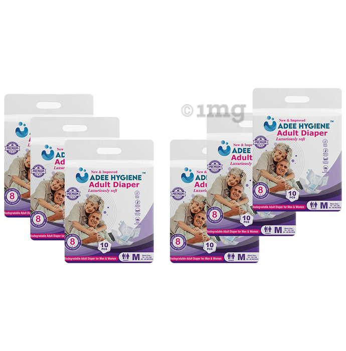 Adee Hygiene Adult Diaper Luxuriously Soft (10 Each) Medium is designed to help provide comfort and protection for individuals seeking effective hygiene solutions. The ultra-soft, skin-friendly material ensures a gentle feel, while the advanced absorbent core helps maintain dryness for up to 8 hours. The odour-lock system keeps users fresh, helping support confidence throughout the day. Its discreet, slim design can support ease of movement, making it ideal for daily activities. The secure tape-style fit allows for easy adjustments, helping ensure reliable leakage control and a comfortable experience for both men and women.