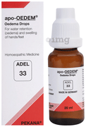 ADEL 33 Apo-Oedem Drop supports the management of different forms of edemas, including cardiac, hepatic, renal, lymphatic and subcutaneous cell tissue. Conditions that can trigger or accompany the development of edemas include inflammation, deposits, disruptions in circulation and circulatory weakness through coronary insufficiency and reduction in kidney function. It also helps relieve swollen ankles due to water retention, abdominal bloating and venous stasis.
