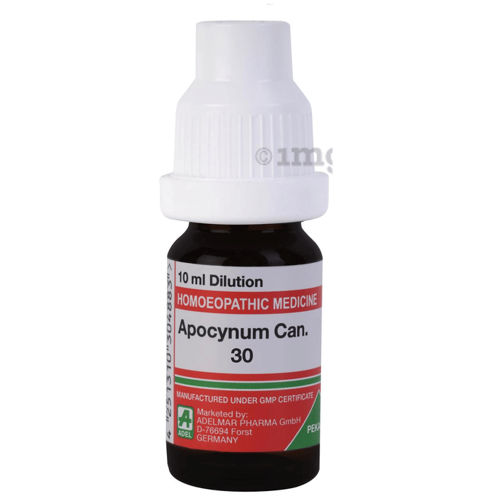 ADEL Apocynum Can Dilution is a homoeopathic solution formulated with plant extract of Indian hemp and ethanol. It is primarily used to alleviate symptoms of swelling and minor respiratory issues. This blend effectively reduces acute scalp swelling, and sweating, and helps in managing conditions like vomiting, nausea, drowsiness, and breathing difficulties. It also relieves abdominal bloating and supports healthy chest and respiratory functions. Additionally, it helps regulate delayed menses associated with water retention and bloating and is beneficial for short breaths, dry coughs, and colds.