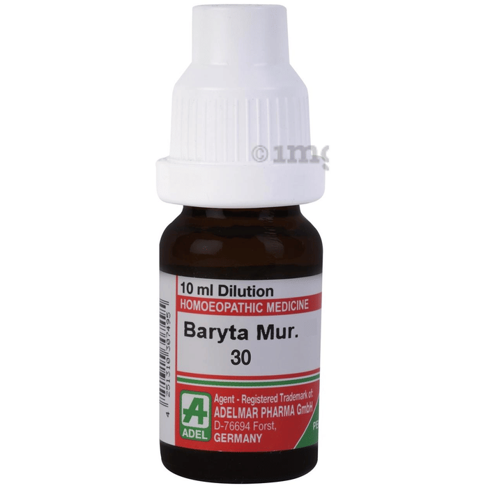 ADEL Baryta Mur Dilution 10M is homoeopathic. It aids the maintenance of good mental health and helps soothe swollen glands. It also contributes to managing stiff body muscles and helps relieve throat ache.