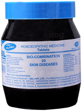 ADEL Bio-Combination 20 Tablet ADEL Bio-Combination 20 supports skin that becomes dry and cracked, soles and palms. Scar tissue are adhesions after operations. Fissures or cracks in the palms of the hands, or hard skin fistulous ulcers secreting thick yellow pus. It is indicated for skin affected by eczema. Key Ingredients: Calcarea fluorica,Calcarea sulphurica,Natrum muriaticum,Kalium sulphuricum,Natrum sulphuricum Key Benefits: