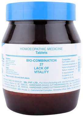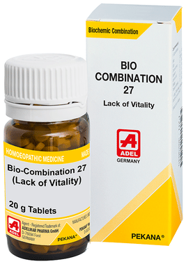 ADEL Bio-Combination 27 is a homoeopathic medicine that is useful in the treatment of weakness and debility. Bio combination 27 contains a balanced combination of essential bio-chemic salts which help in maintaining optimum electrolyte balance and vitality in our body. It is also effective in the treatment of lassitude and premature ejaculation.