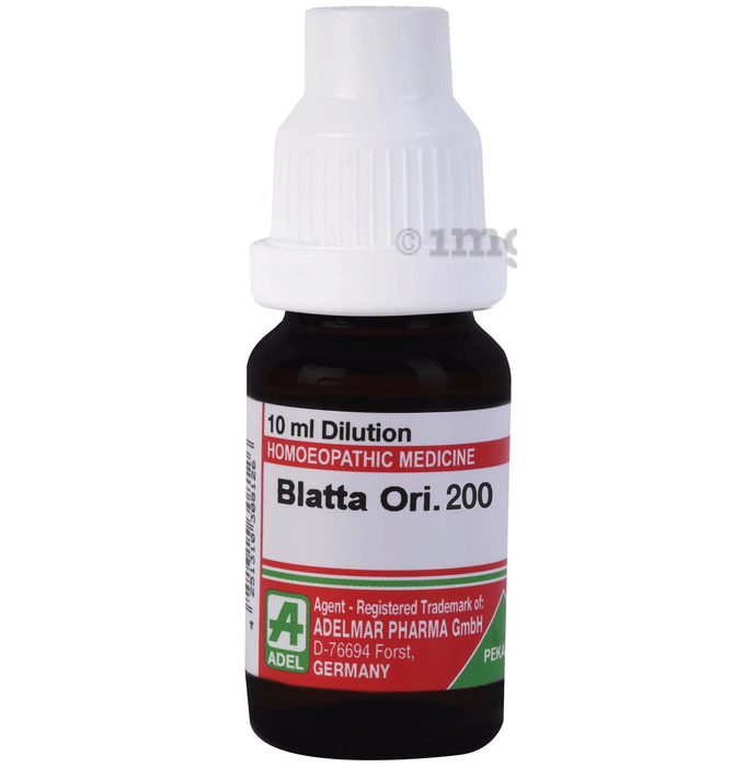 ADEL Blatta Ori Dilution is a homoeopathic medicine. This drug is extracted from cockroaches. It was invented accidentally when a patient consumed a tea in which cockroach is infused.