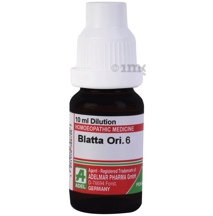 ADEL Blatta Ori Dilution is a homoeopathic medicine. This drug is extracted from cockroaches. It was invented accidentally when a patient consumed a tea in which cockroach is infused.
