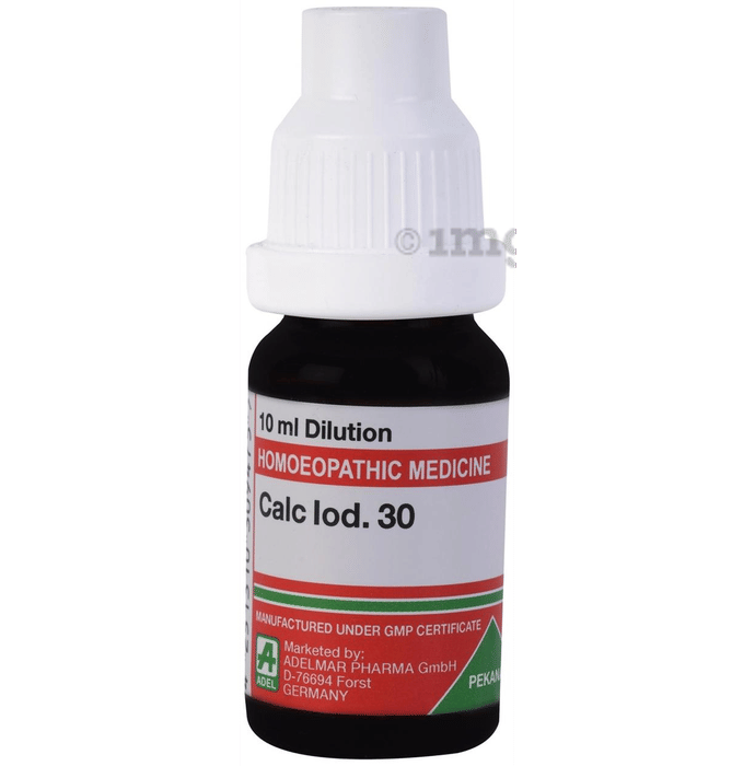ADEL Calc Iod Dilution also known as Lime of Iodide is a tissue salt used homoeopathically for many conditions affecting glands such as thyroid and tonsils.