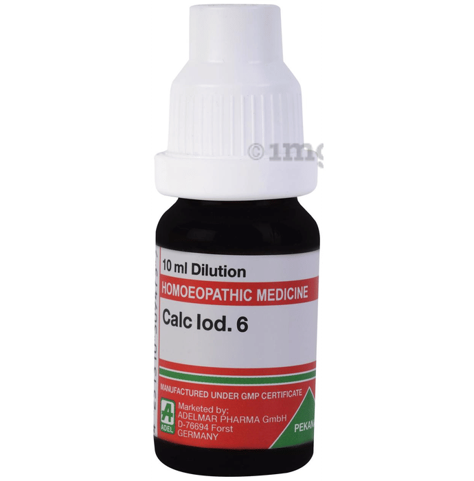 ADEL Calc Iod Dilution also known as Lime of Iodide is a tissue salt used homoeopathically for many conditions affecting glands such as thyroid and tonsils.
