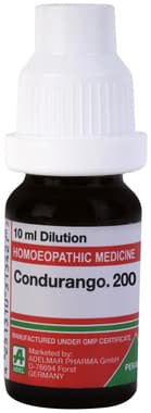 ADEL Condurango Dilution is a homoeopathic remedy prepared from the bark of the stem of the gonolobus condurango plant. The medicine can help stimulate digestive function, and nervous digestion and thus maintaining general health.