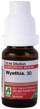 ADEL Wyethia H Dilution is a homoeopathic product that may provide relief from conditions related to throat ache, dryness in the throat, burning sensation, and pain caused while swallowing. It can also be used for managing symptoms of piles, itchiness, and flu. Based on homoeopathic composition, it is safe to use and has no side effects.