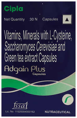- It helps to protect the hair damaged by sunlight; Reduces and protects the greying of the hair; Improves the hair structure, strengthens the hair and increases the resistance of the hair from mechanical, chemical and sun damage; Fortify the hair with the power of L- cystine, brewers yeast and calcium pantothenate; Adgain plus capsule is used for hair fall, retarded hair growth, damaged hair, and other conditions