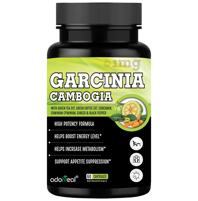 Adorreal Garcinia Cambogia 800mg Capsule contains a blend of garcinia cambogia, green tea, green coffee, curcumin, cumin, ginger, and black pepper extracts. It can support daily energy needs and metabolic activity and also assist with appetite regulation as part of a health-focused lifestyle.
