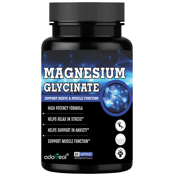 Adorreal Magnesium Glycinate Capsule is designed to support nerve and muscle function with a gentle formulation that can be taken regularly. This supplement contains magnesium and can help manage rest patterns, stress levels, and internal comfort, especially during periods of physical exertion or daily strain.
