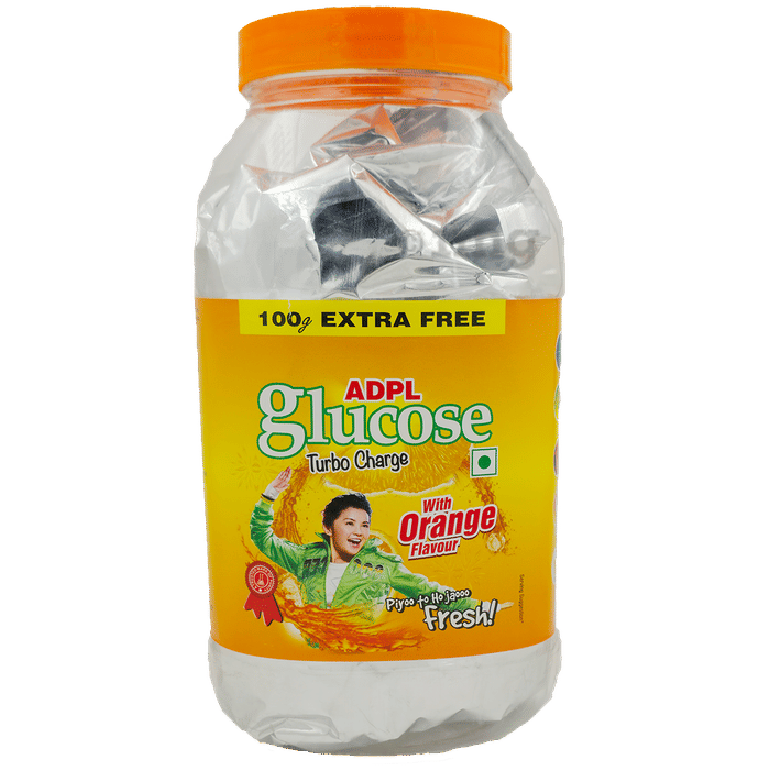 ADPL Glucose Turbo Charge Orange is a refreshing glucose-based energy drink mix enriched with vitamin D and calcium. This formulation may assist in supporting the body's nutritional needs by providing a quick source of glucose to the body. It can help in addressing fatigue and can be useful during high heat or physical strain, making it suitable as a hydration and recovery drink for active individuals.